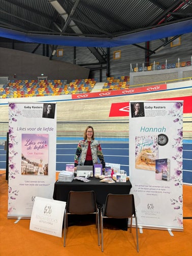 Daar stond ik dan: op de boekenbeurs in Apeldoorn. Ik heb het nog nooit gedaan, dus ik denk wel dat ik het kan. Dat idee.